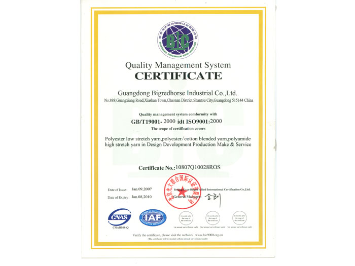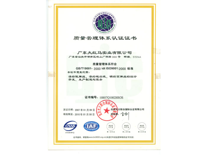 质量管理体系认证证书(英文版)