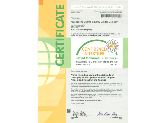 《欧盟认证证书--Oeko-Tex Standard》织带