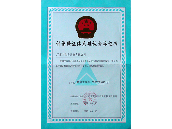 计量保证体系确认合格证书